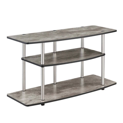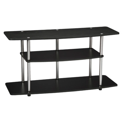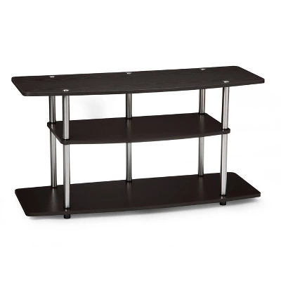 The modern no-nonsense design of this 3-Tier TV Stand will complete the look of any contemporary home. Large enough to accommodate a 42-inch flat-screen TV, this stylish entertainment center has two spacious open shelves that are perfect for storing all of your video and audio equipment, along with your DVDs, game consoles and extra cables. Made of durable wood that can handle weight and stainless steel poles that won’t rust, this TV stand pairs functionality with sleek, simple style perfectly.