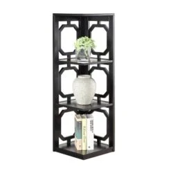 28″ Tucson Metal 3 Tier Corner Bookcase Weathered Gray/Black – Breighton Home