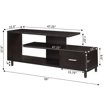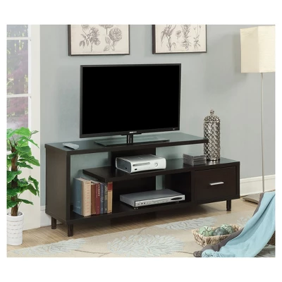Customize your entertainment hub to fit your unique gear with the help of this Seal TV Stand from Convenience Concepts. The multi-tiered, asymmetrical shelf design gives you the flexibility to store auxiliary devices, movie collections and anything else you need to create your perfect entertainment setup. This beautiful TV stand even has a side drawer for keeping cables, adapters, remotes and all the other essentials that seem to go missing frequently.